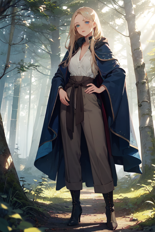 Лесной ветерок играл длинными светлыми волосами девушки, словно пытаясь унести их в танец вместе с опавшими листьями. Ей было лет двадцать пять, но в её глазах читалась усталость, будто она прожила куда больше. Одежда выдавала в ней странницу — длинный расстёгнутый плащ, почти касающийся земли, белый топ с вырезом на груди, тёмно-коричневые брюки и ботинки на небольшом каблуке.