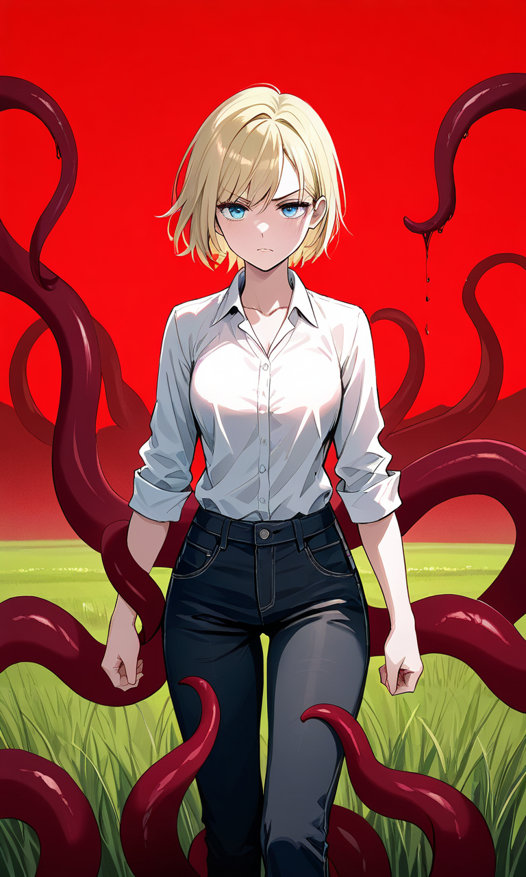 Чай в чашке почернел, травинки извивались, словно живые. Солнце погасло, небо стало кроваво-красным. Трава и цветы исчезли, оставив голую потрескавшуюся землю. А дерево превратилось в огромное щупальце, сжимающееся и разжимающееся в такт невидимому дыханию.