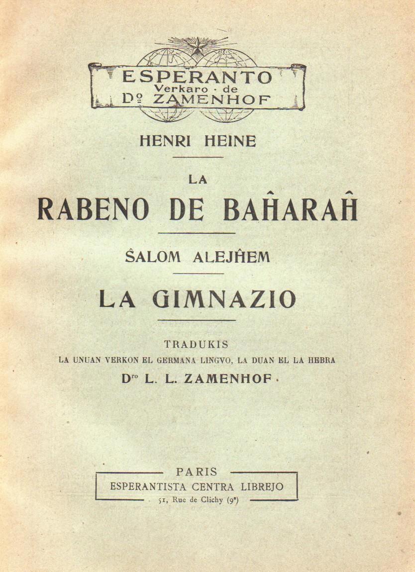 Заменгофский перевод "Гимназии" вышел под одной обложкой с его переводом произведения Генриха Гейне "Бахарахский раввин".