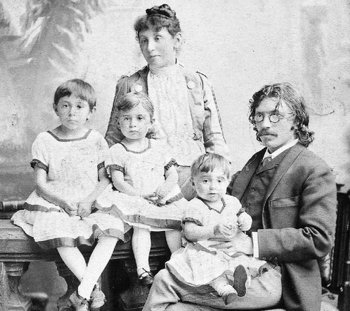 Шолом Алейхем (1859-1916) с женой Голдой и половиной своих детей.