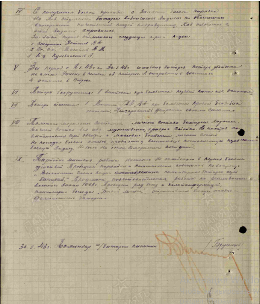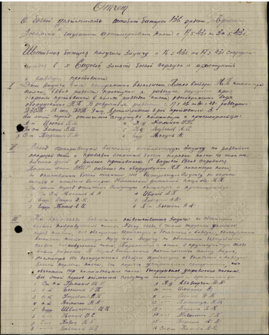 Отчет о боевой деятельности штабной батареи 136 гап с 17.5.43 г. по 30.5.43 г.