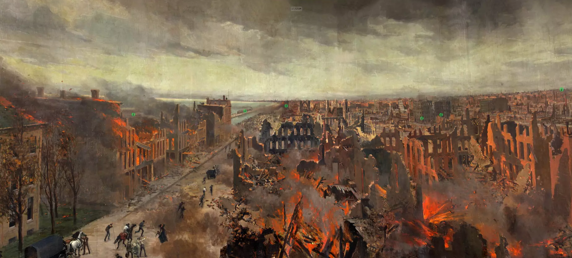 Алый отблеск освещал небо на многие мили вокруг. Необозримые пространства горящих зданий представляли собой одновременно завораживающее и устрашающее зрелище.