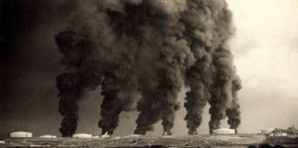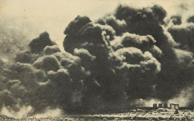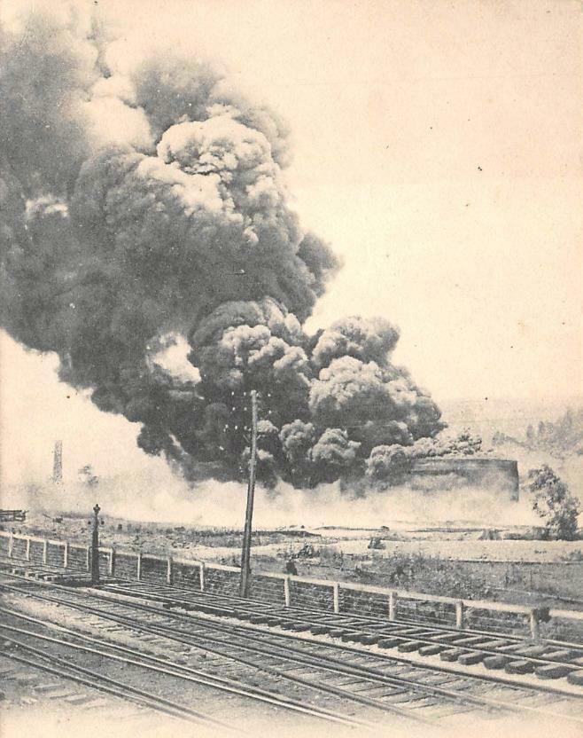 Огромные нефтяные склады Англо-Американской компании, поражённые одним из снарядов, через несколько мгновений взлетели на воздух с самым ужасающим и страшным взрывом от которого потрясло весь город. В следующий миг показалось, что и город, и река окутаны одной большой пеленой пламени. Затем, когда горящая нефть стала растекаться по сточным канавам во все стороны, разом вспыхнули яростные пожары. Целые улицы горели от конца до конца.