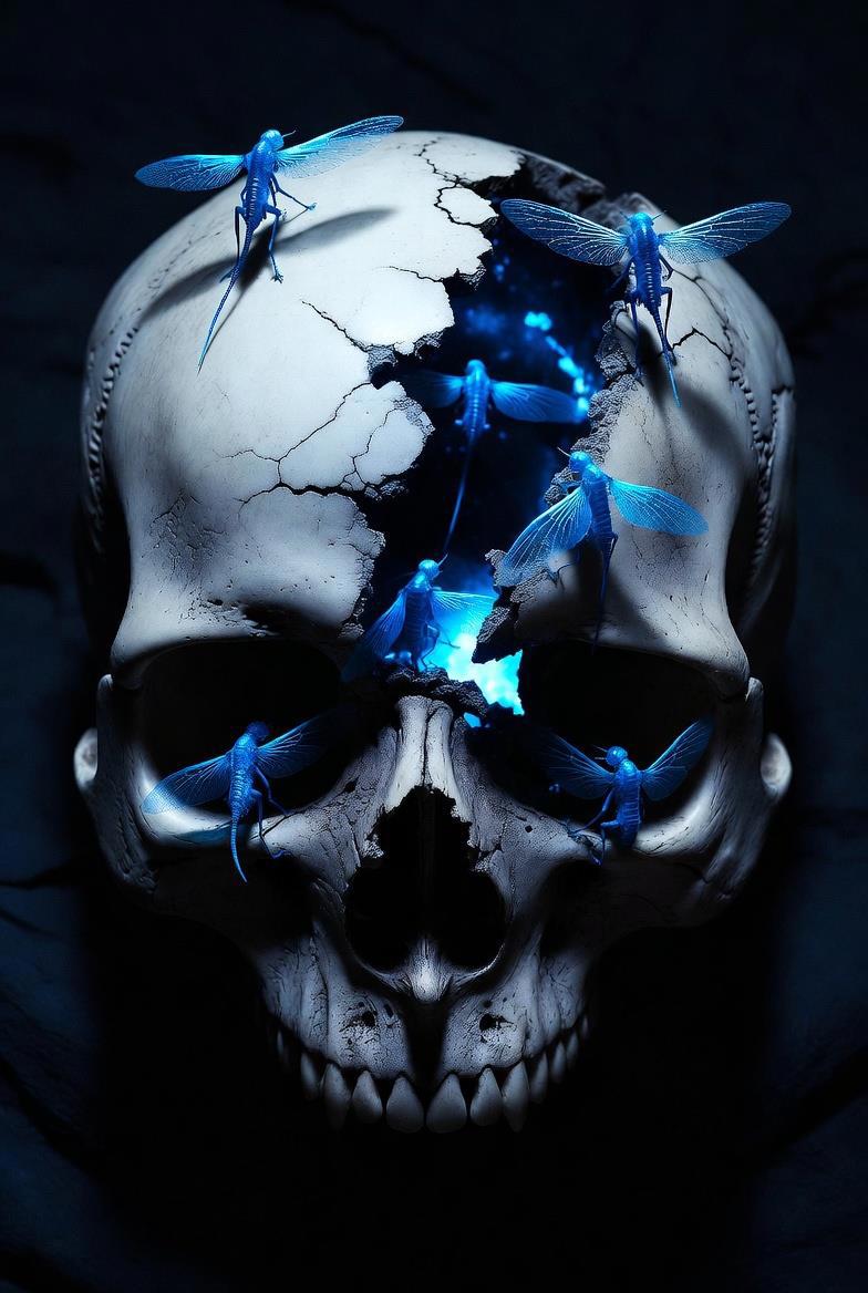 Они были размером с ладонь, синие как глубокий океан в три часа ночи, с крыльями из спрессованного света. Они кружили над его головой, оставляя в воздухе нити — тонкие, светящиеся, как швы на разорванной реальности.