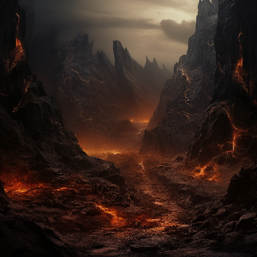 Наконец, стены расступились, и взору их открылась страшная картина. Впереди распростерлась долина, со всех сторон окруженная нависающими скалами, пылающая невероятно высокой стеною бушующего пламени. Множество людей в черных одеждах обступили подобие величественного каменного зиккурата, возвышающегося в сердце долины, покрытого жилами текущей вниз лавы. К верху распростерли они руки свои, молчаливой молитвою взывали они к черному покровителю своему. В горестном безумии бились несколько женщин, тянулись к детям, которых уносили прочь. Люди эти держали на руках плачущих младенцев и выстраивались в длинную очередь перед лестницей зиккурата. А на вершине его, объятой пламенем и густой тьмою, помахивая рогатою головою и поводя огромными плечами, восседал Он.