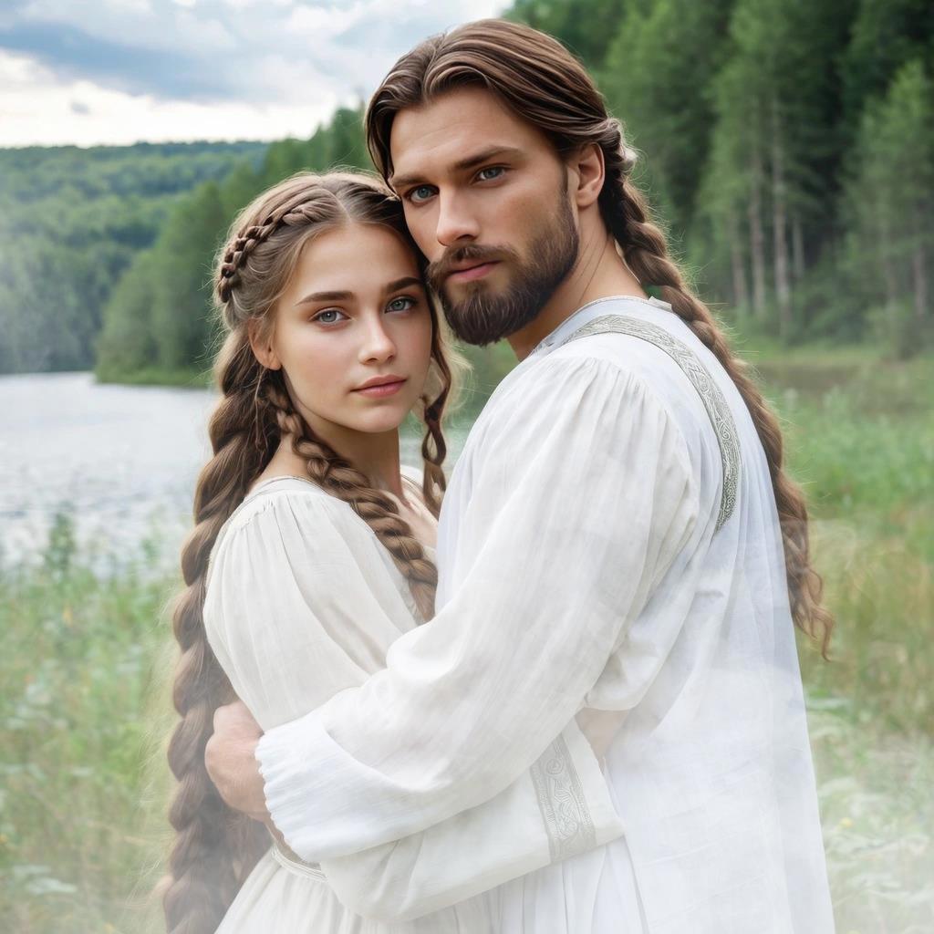 Видит Зоя – солнце ясное светит, травы все росой унизаны, зелёные все, сочные. А посреди них внучка ее Яра стоит да с мужем своим. Ратибор ее обнимает за тонкий стан, а она ему руки на грудь положила. А вокруг туман клубится.