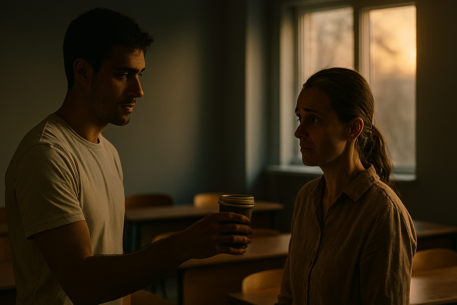 И Ян... Ян стал постоянной, теплой точкой в моем новом мире. Наши утренние кофе стали традицией. Иногда мы оставались после уроков, обсуждая какие-нибудь проекты или просто молча работая в соседних кабинетах. Его присутствие было как солнечный свет в зимний день – не обжигало, а согревало.