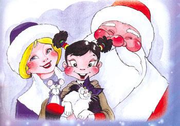 — Тогда в путь! — хлопнула в ладоши Снегурочка. Вскоре друзья были готовы к походу. Мышонок взял с собой кусочек сыра, а Элина любимый зонтик, варежки и зелёную шапочку. Снегурочка подарила им по тёплой шубке, а в ноги положила сумку с провизией. Последним к компании присоединился чёрный пушистый кот Васька с белой грудью и белыми лапами. Он важно кивнул, развалился на бархатном сидении. Петька на всякий случай спрятался за спину Элины.