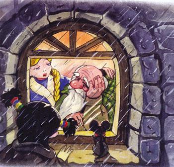 — Конечно, — закричал храбрый мышонок, — мы спасём Деда Мороза. Сани пролетели надо льдами. Легко перенесли путешественников через Скалистые горы. У Волчьей горы полярная сова попрощалась с друзьями, пожелала удачи и полетела домой. К вечеру сани опустились прямо на поляне Тенистого леса. Друзья немного растерялись, когда увидели высокий терем за мрачным забором из толстых кольев.