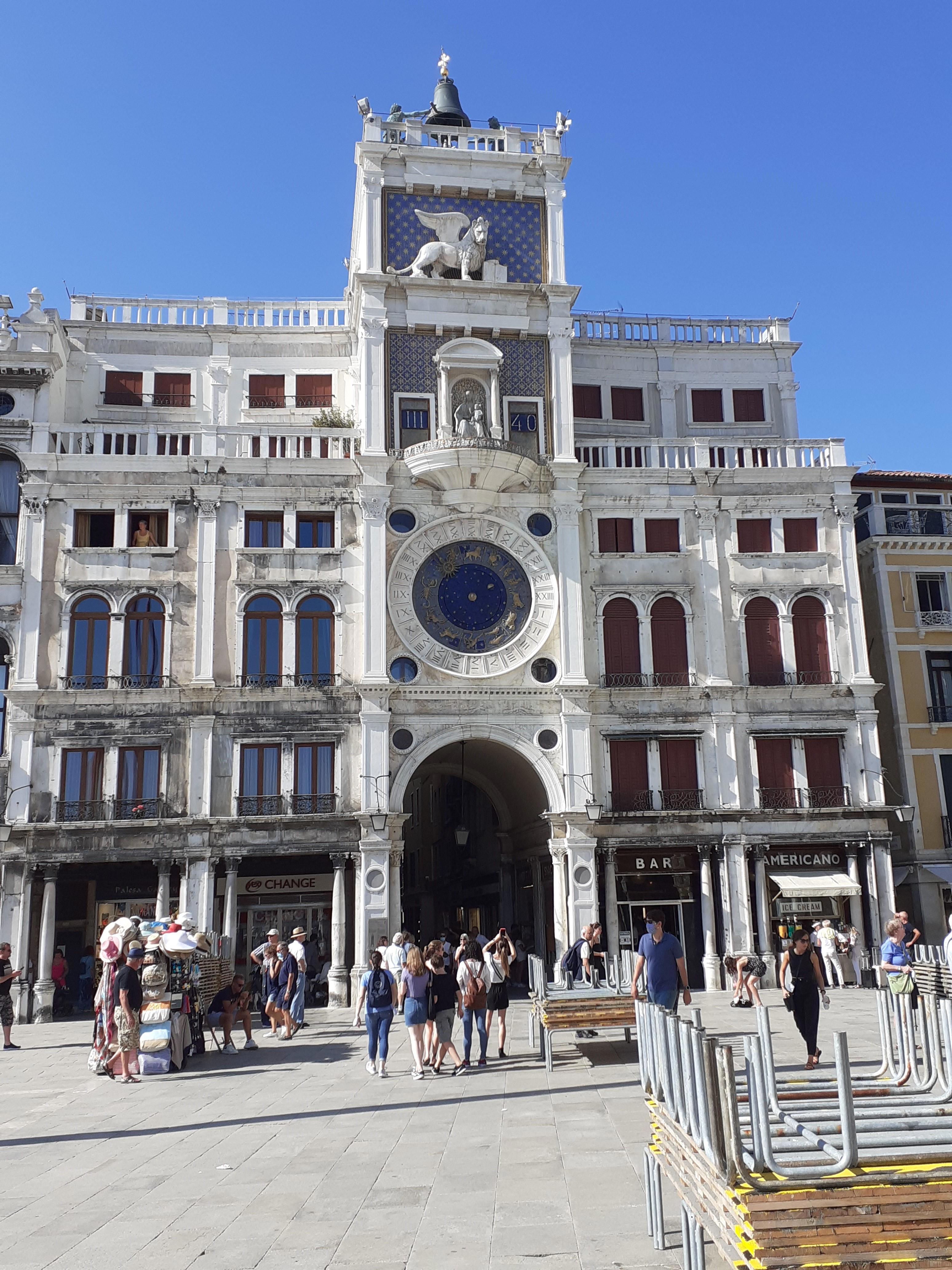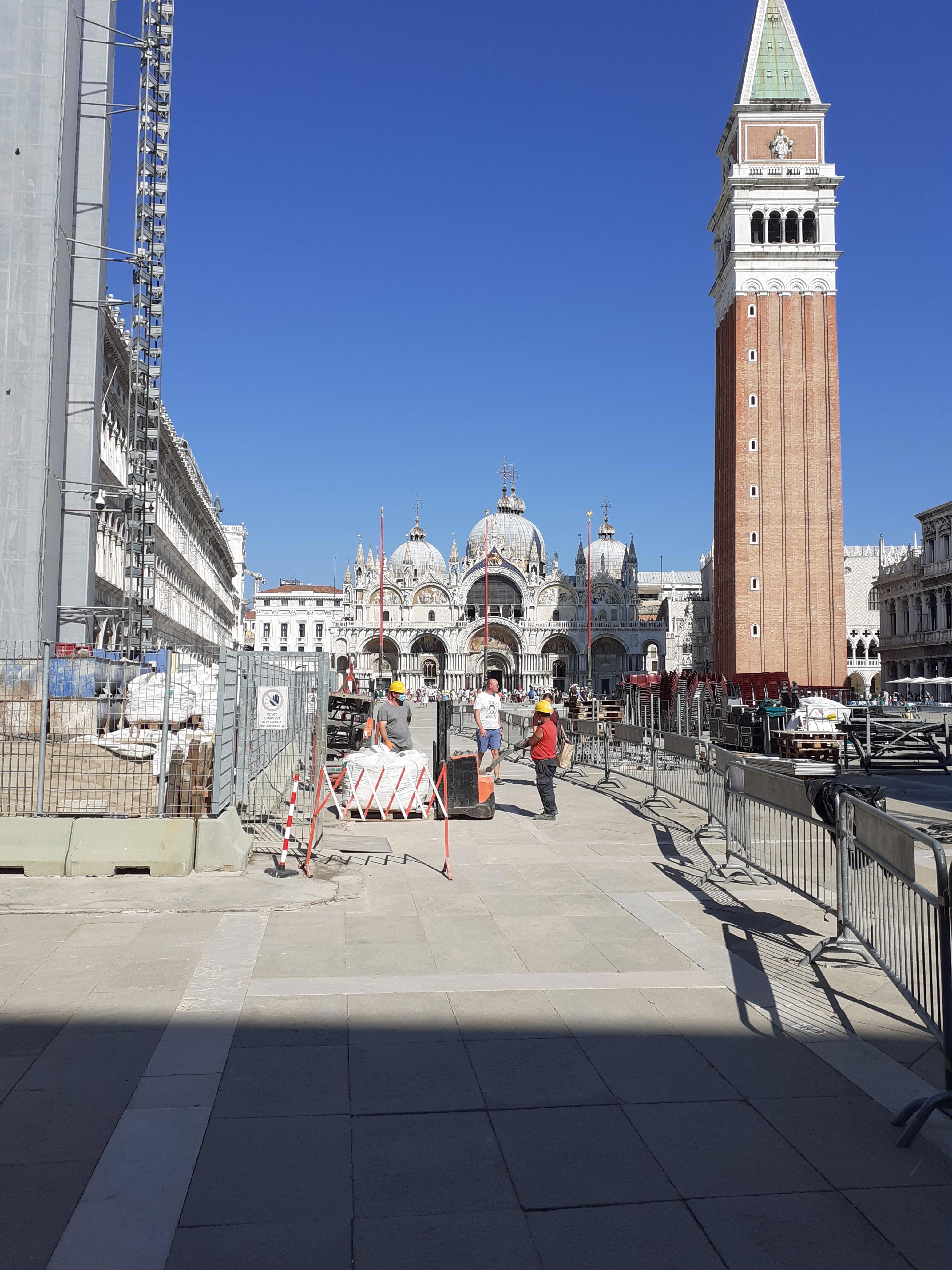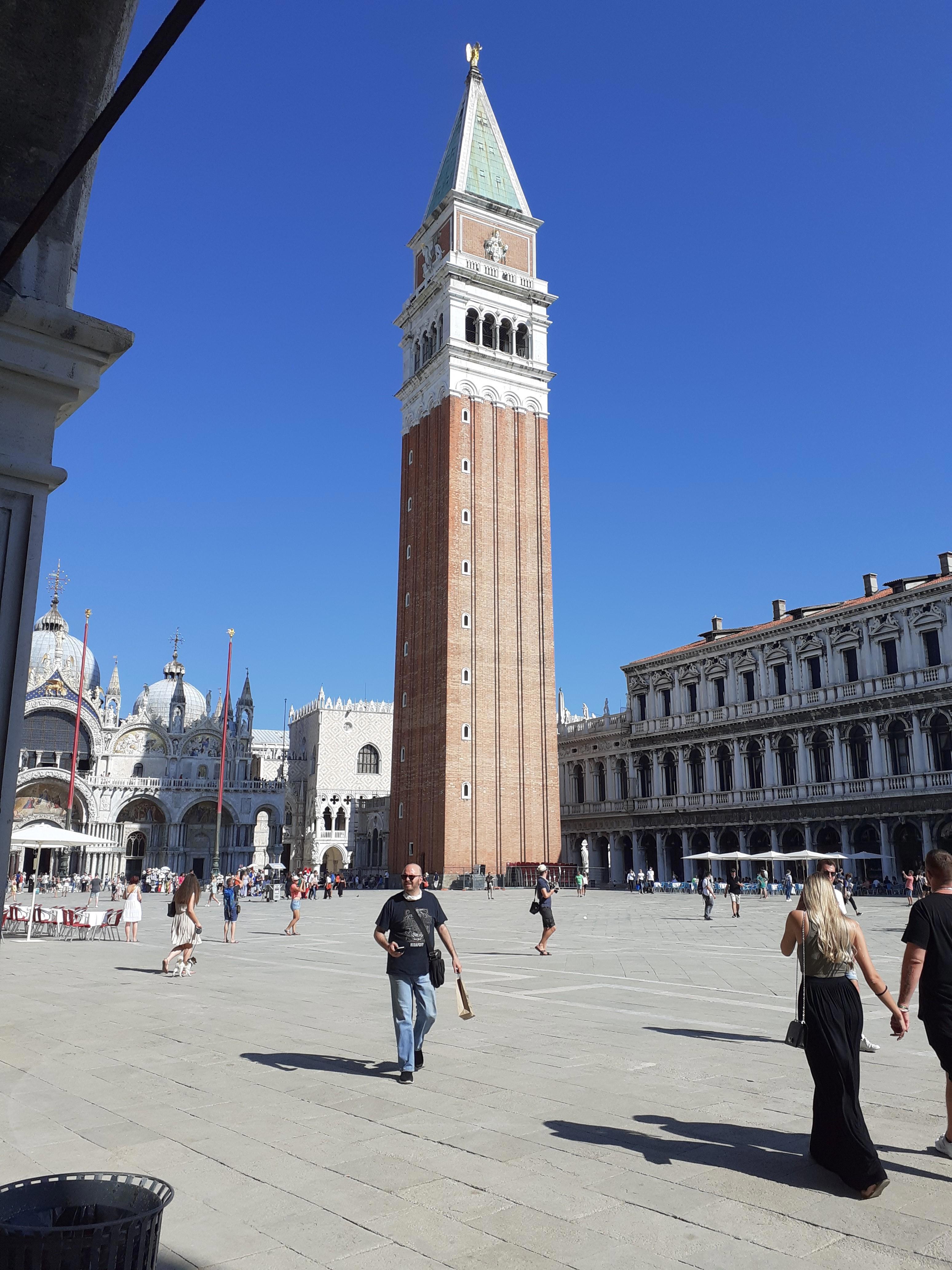 Также на площади возвышается высокая башня: она является колокольней собора Святого Марка, её высота составляет 98,6 метра. В прежние времена башня служила маяком и смотровой площадкой.