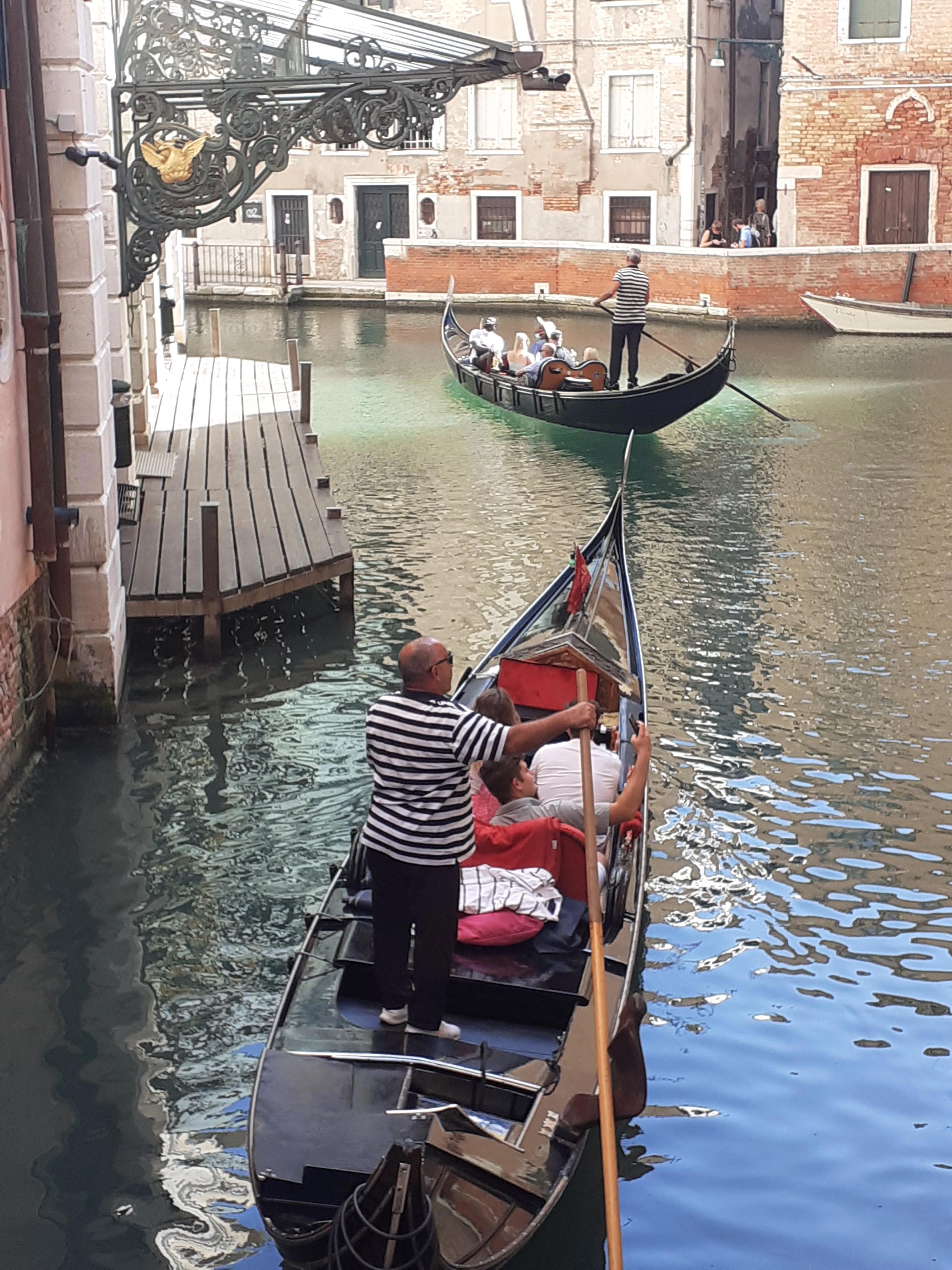 Когда устанете ходить, то можно покататься на гондоле. Гондолой управляет гондольер – представитель древней венецианской профессии. Раньше ремесло почти всегда передавалось по наследству от отца к сыну, но сегодня, чтобы стать гондольером, нужно пройти обучение и сдать экзамены; ежегодно выдаётся всего несколько новых лицензий. Гондольеры – это не только гребцы, но и своеобразные актёры: они поют баркаролы, рассказывают истории и создают атмосферу романтики для туристов. Одежда гондольеров – полосатые рубашки и соломенные шляпы – стала символом Венеции. Полоски изначально имели практическое значение: они помогали выделить гондольера на фоне воды и тумана. Сегодня это часть традиции и туристического образа.