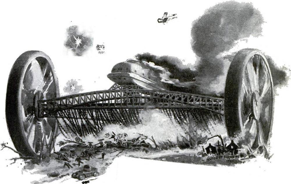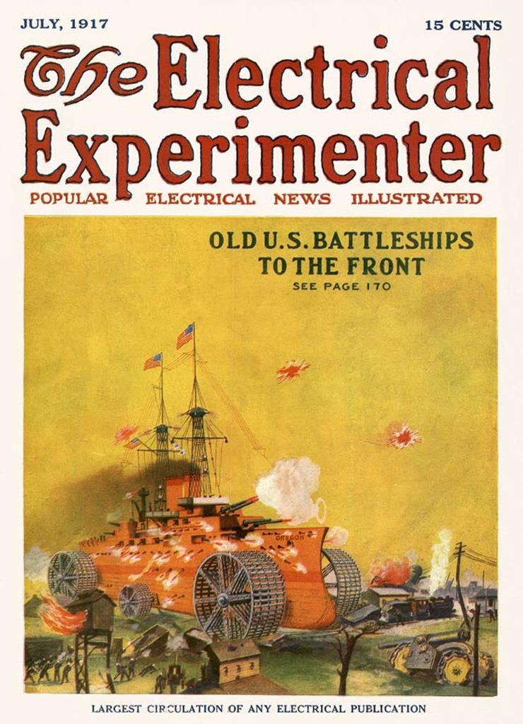 Ну и апофеоз идеи. Центральной темой июльского номера журнала The Electrical Experimenter за 1917 года стало создание «сухопутного броненосца». При этом изобретатель предлагал не строить его с нуля.