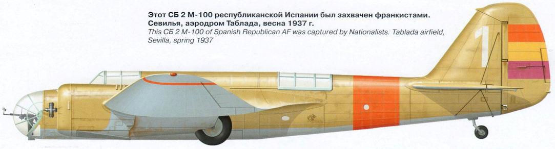 Самолёты СБ 2М-100А стали выпускать с декабря 1936-го, и они тоже успели повоевать в Испании.