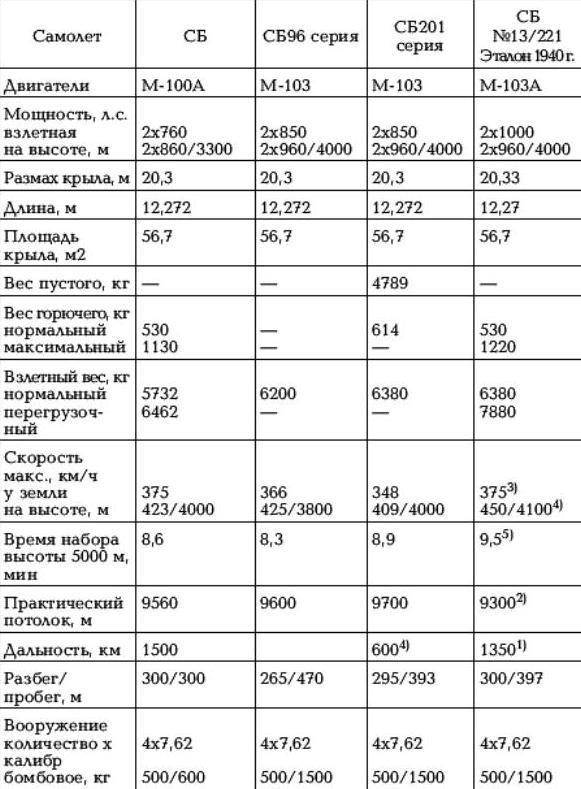 Итак, ЛТХ самолётов СБ-2М-103, с моторами М-103 различных модификаций, достаточно хорошо известны и приведены во всех справочниках. С данными же для СБ-2М-100 и М-100А несколько сложнее.