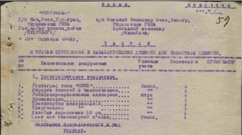 5. Походная фотолаборатория шт. - 2. Политотдел - 1. Клуб - 1.