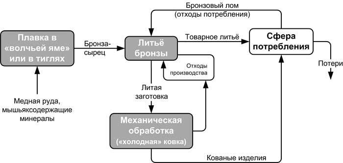 В 3-м тысячелетии до н. э. бронзы производились в металлургических центрах Евразии и Северной Африки практически повсеместно. Поражает сходство технологии производства бронз, способов литья орудий и оружия, а также внешнего вида металлических изделий на всей этой огромной территории в условиях существования в ее пределах резко различающихся земледельческих и скотоводческих культур. Из-за неравномерного распределения по различным географическим регионам металлических руд выделяются народы – производители и народы – потребители металлов, зависевшие от их поставок. Таким образом, важнейшим следствием становления металлургии стало формирование международного разделения труда еще в доисторическую эпоху. А ведь ранее его возникновение относили к эпохе великих империй Древнего мира – Римской и Китайской.