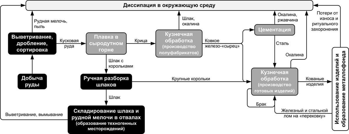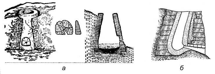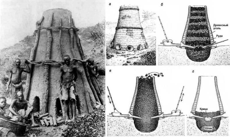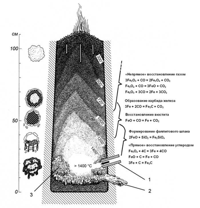 Повышение температурного уровня плавки зависело, прежде всего, от совершенствования техники и технологии дутья. Определяющую роль играло использование естественного дутья – силы ветра. Эффективными были печи, встраиваемые в естественный ландшафт. Они часто строились с подветренной стороны холма, имели соединяющиеся горизонтальный и вертикальный каналы, были обложены камнями и обмазаны глиной. В этом случае достигался «эффект трубы», усиливавший приток воздуха в агрегат. В поду некоторых печей были металлоприемники – углубления для установки горшков, в которые через специальные отверстия стекал металл.