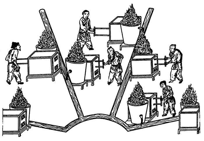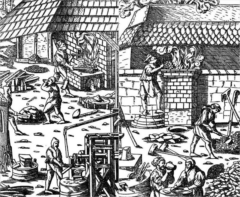 Значительный прогресс последовал вслед за изобретением простейших ручных, а затем и ножных мехов. Они изготовлялись из шкур животных и представляли собой примитивный тип насоса с резервуарами, приспособленными для наполнения их воздухом. Ручные и ножные мехи широко использовались уже в 3-м тысячелетии до н. э. Металлургические печи с искусственным дутьем были, как правило, прямоугольными или цилиндрическими, с толстыми стенками высотой до 1м, сложенными из камня и изнутри обмазанными глиной, целиком глинобитными или выложенными из кирпича.