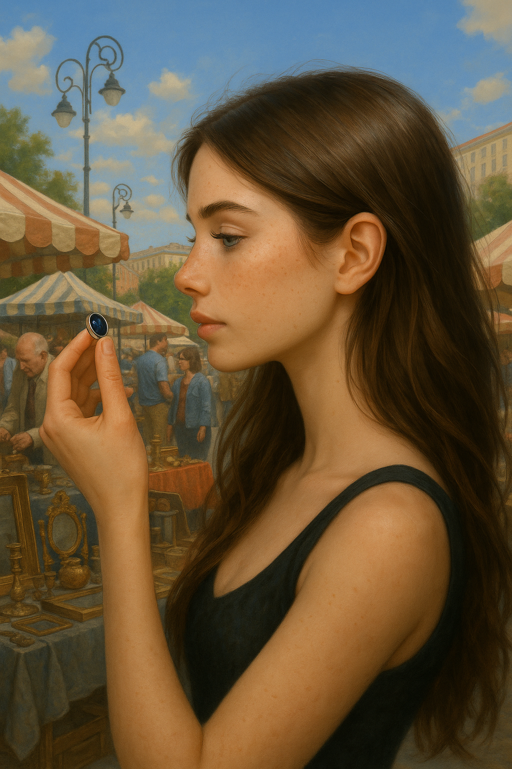 Лена кивнула и двинулась вдоль прилавков, словно не столько искала, сколько позволяла себе быть найденной. Иногда ей казалось, что настоящие находки сами выходят к тебе — просто надо быть в нужном состоянии: не пытаться, а чувствовать.