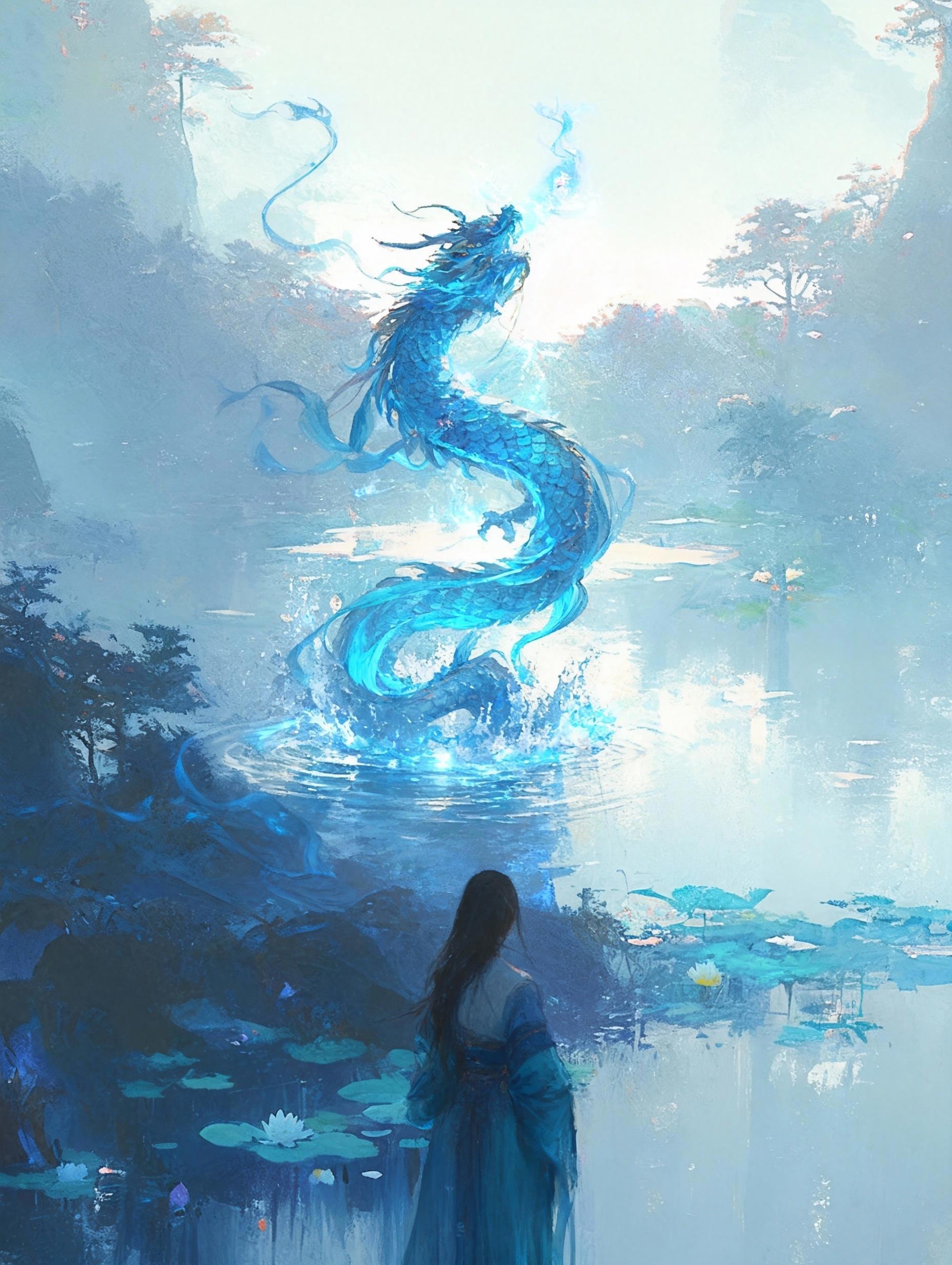 Наконец бурление немного стихло, а над поверхностью показалась огромная голова речного божества – дракона Цинлун.