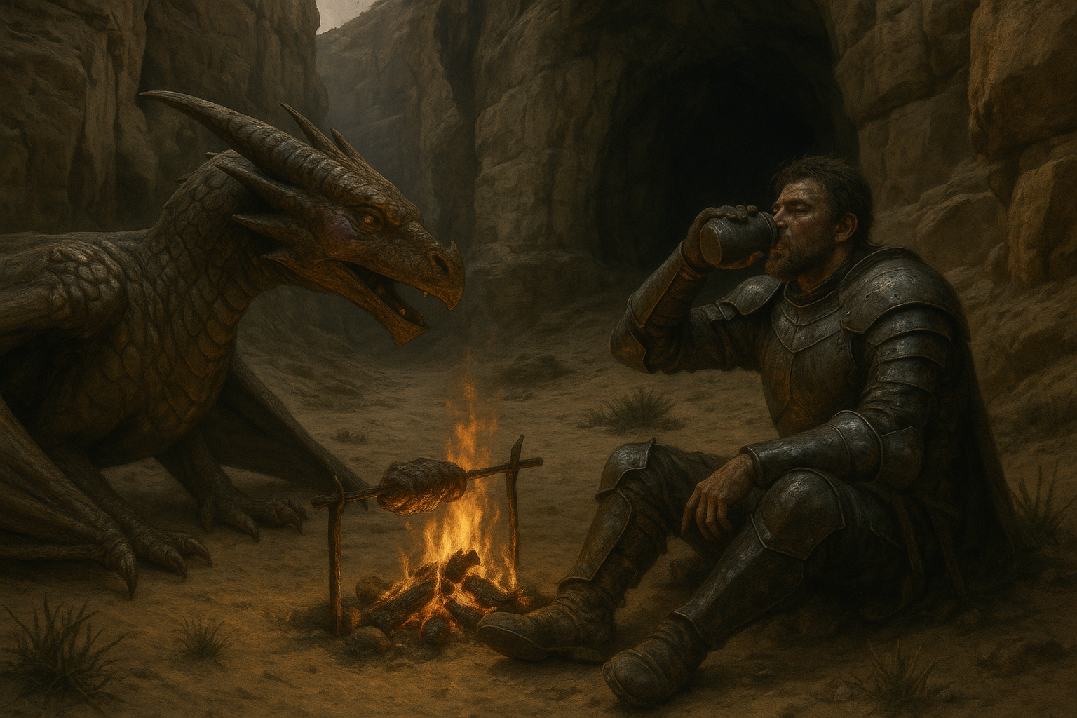 - Да как обычно, сначала чтоб нечисть, то есть меня, истребить, а потом пятерку выбил и успокоился. Вот жизнь, а! Дал денег - в морду получил от жены, не дал бы, так от тебя все равно получил бы. - Дракон сердито пыхнул огнем, едва не спалив жаркое.