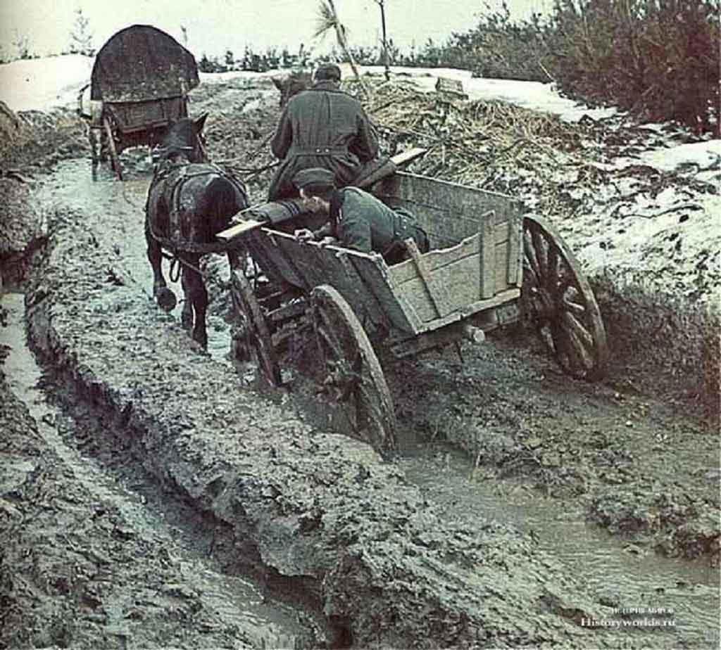 Это крайне необходимо, оживлять пейзаж, ибо «эта война в гораздо большей степени способствует пробуждению эстетических чувств, чем прошлая».[18] (Там же. с. 390). ЦИВИЛИЗАЦИЯ в западном, да и в немецком смысле это прежде всего красота и удобство. В них одних - предельная рациональность. Красив и удобен, значит полетит, опять же говорят конструкторы о самолёте. Может оттого-то Русь и вызывала такую крапивную жажду - обустроить-принарядить её изначально унылый пейзаж возле дорог, чтоб хоть чуть красивее была. И хотя бы тем цивилизованней. Из удобств важнее всего было решить проблему уже самих дорог. Доселе непобедимую русскую напасть.
