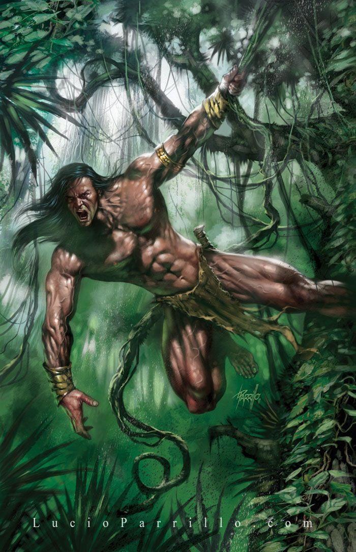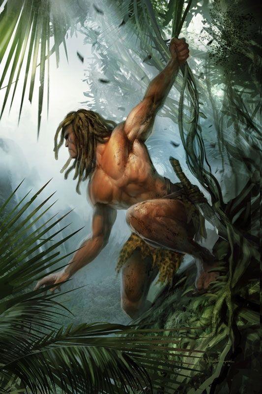 Словно младенца подняв неизвестного, Тарзан отнёс его к источнику. Обмыл рану, умело обложил её целебными травами.