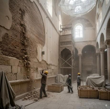 кирпич эхом разнесся по пустому залу синагоги Бен Эзра. Махмуд, прораб реставрационных работ, третий день руководил разборкой старой кладки северной стены. Февральская влажность превращала штукатурку в вязкую массу — она крошилась неохотно, словно сопротивлялась вторжению. Синагога Бен Эзра — музей и памятник архитектуры — была закрыта для посетителей на время реставрации. Инспектор из Министерства древностей проверил документы и ушёл, оставив Махмуда с рабочими. Охранник дремал у входа — смотреть особо не за чем, кроме как за строительными материалами. В полумраке, разрезаемом лучами света из высоких окон, висела пыль в воздухе. Пахло плесенью, старым деревом и чем-то неуловимо древним — запахом веков, когда здесь ещё звучали молитвы. Луч фонарика вы