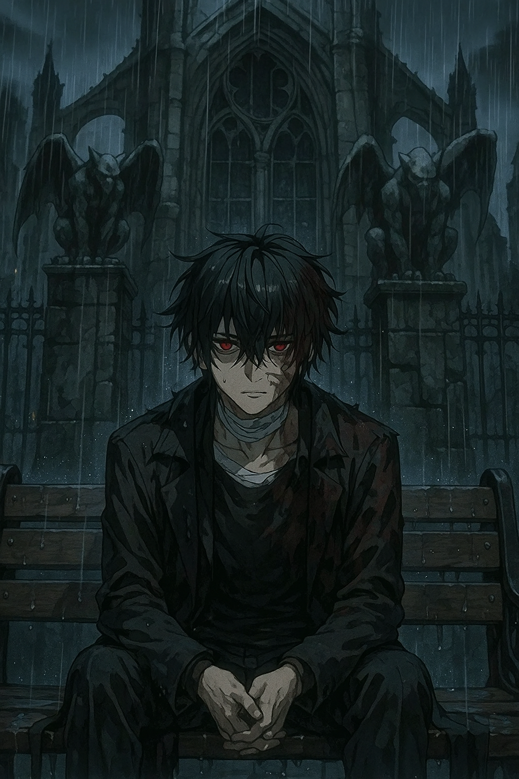 Мужчина затушил сигарету о край лавки, бросил окурок в лужу и встал. Пальто липло к телу, но он, кажется, не замечал. Дождь стекал по его лицу, смывая пепел с пальцев, но не тоску в глазах. Он засунул руки в карманы и пошёл по улице, не оглядываясь на горгулий, которые провожали его пустыми взглядами. Шаги его звучали глухо, почти теряясь в шуме дождя.