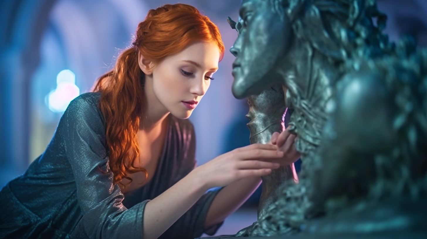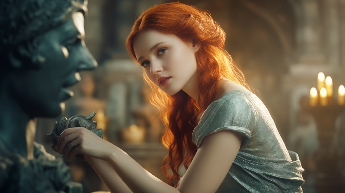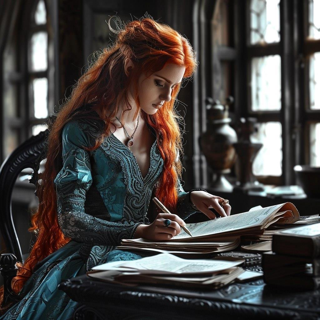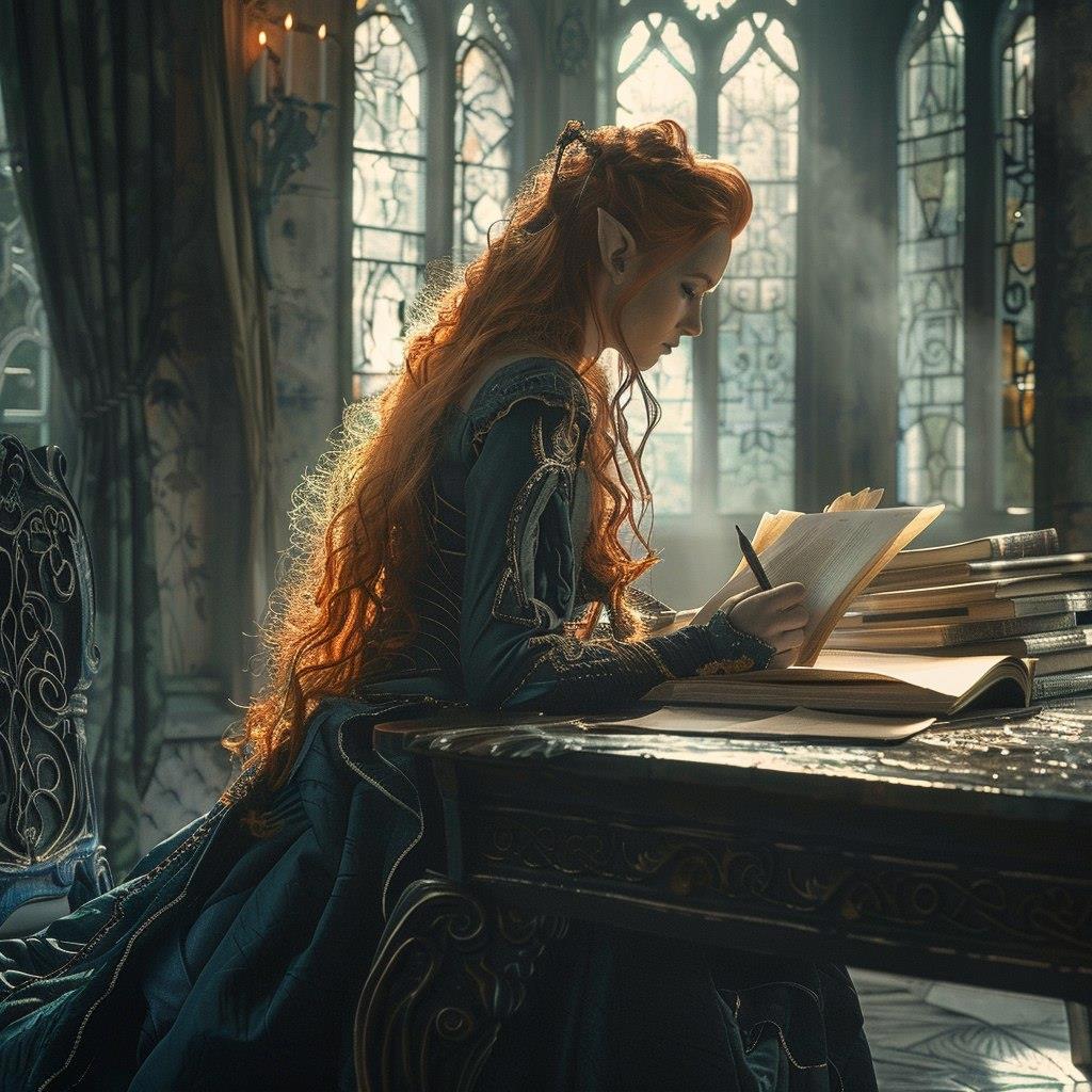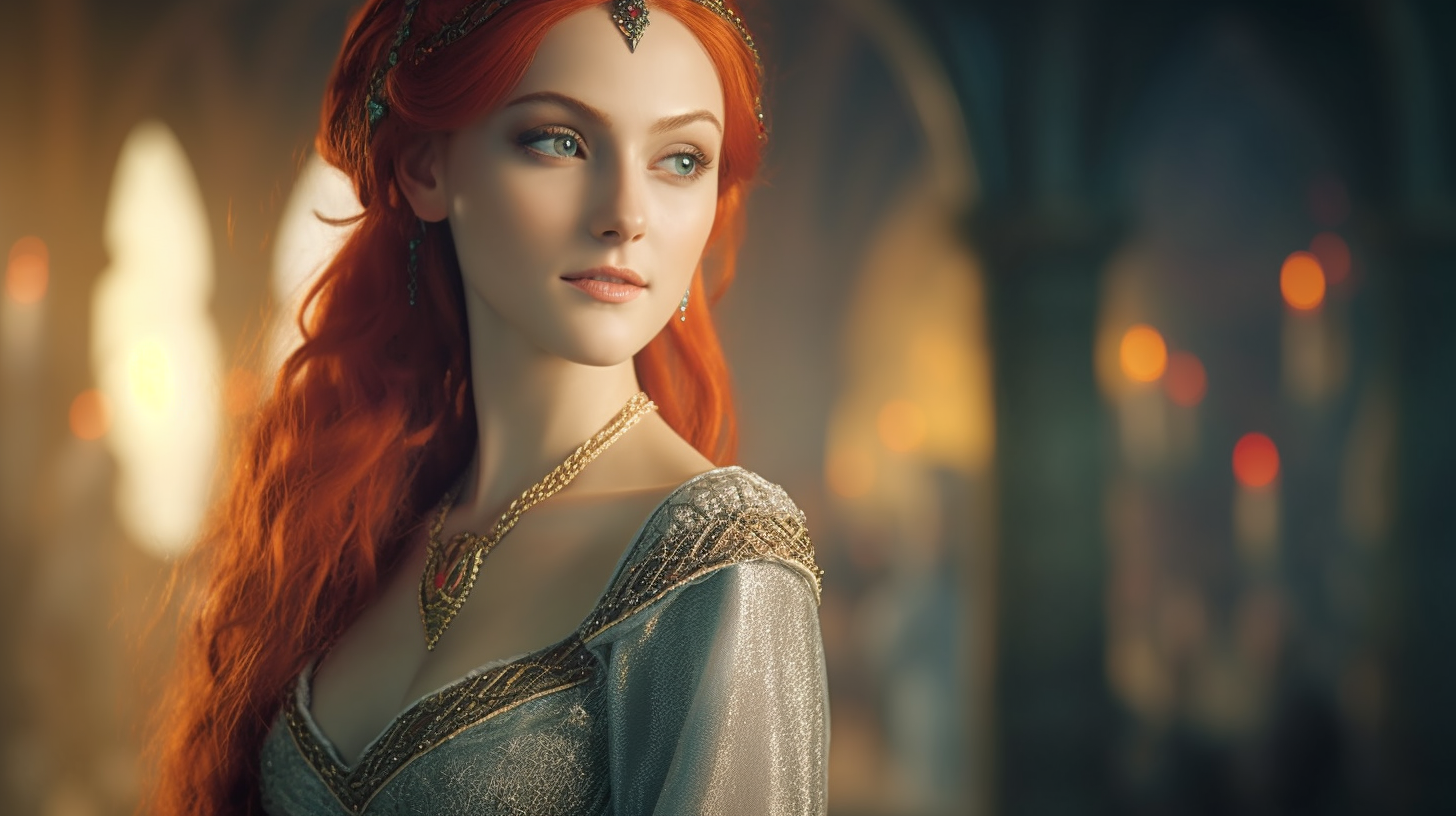 «Взгляд золотых глаз задержался на стройной, точно былинка, женской фигурке, сейчас активно корпевшей над куском мрамора и с помощью резцов придававшей ему форму. Малекит знал сию молодую деву. Нерданэль, дочь его учителя, похожая на отца серостью глаз и огненной медью волос. Гордая, сильная волей, упрямая — пусть и по-другому, нежели сам друкай или Феанаро. Обладающая острым проницательным умом, по заверению многих, пообщавшихся с девушкой лично. И готовая без колебаний заехать небольшим, крепким кулачком в глаз любому, кто оскорбит её отца или допустит слишком много вольностей в отношении её самой» («В начале славных дел»)