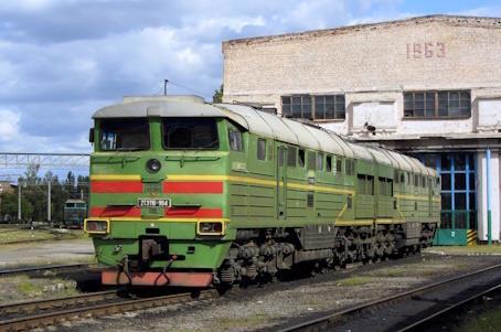 Луганский тепловозостроительный завод («Лугансктепловоз», г. Луганск, Украина) – основан в 1896 г. С 1956 г. переведён на производство магистральных грузовых тепловозов. До 1974 г. выпускались тепловозы серии ТЭЗ, с 1965 г.- тепловозы типа ТЭ10 различных модификаций с дизелями типа Д100 харьковского «Завода им. В. А. Малышева», а также поездные тепловозы типа М62 и маневровые ТЭМ2; выпускались тепловозы 2ТЭ116 с 4-тактными дизелями Д49 Коломенского завода; разработаны мощные грузовые тепловозы с дизелями этого типа -2ТЭ121 (выпускались в 1977-1992 гг.), 2ТЭ136 (построены опытные образцы). В 60-е гг. создано несколько конструкций опытных и серийных тепловозов с гидравлическими передачами. В 1961-1964 гг. тепловозы серии ТГ102 строились серийно на бывшем Ленинградском тепловозостроительном заводе.