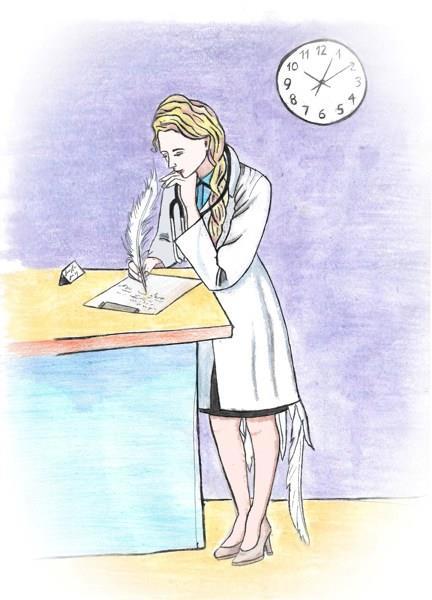 Чуть подумав, она решила вписать в историю болезни подозрение на наличие прикорневого рака слева по данным аускультации и перкуссии. Если внимательно рассмотрят рентгеновский снимок или сделают КТ, то упустить не должны. Анжела открыла историю на бланке осмотра специалистами в приемном отделении и вдруг сообразила, что ей нечем писать. У всех врачей, кроме нее, были свои ручки, но попросить она постеснялась. В итоге достала из небольшой поясной сумки маленькую чернильницу-непроливайку и, поморщившись, выдернула перо из собственного крыла. Подрезав перо лежащими на столе ножницами, сделала необходимую запись и назначила анализы, после чего сообщила администратору о необходимом дообследовании и пошла на пятиминутку. Там также сообщила о своих подозрениях, вызвав некоторое удивление.