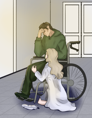 А еще через год в дверях приемного отделения появился слегка прихрамываюший красивый широкоплечий парень. В одной руке он держал огромный букет чайных роз. Другую крепко сжимала совершенно непохожая на парня светловолосая голубоглазая девочка, слегка напоминающая саму Анжелу в том же возрасте. И смерти в глазах парня больше не было. Он подошел к Анжеле и опустился на то самое искусственное левое колено протеза и протянул букет.