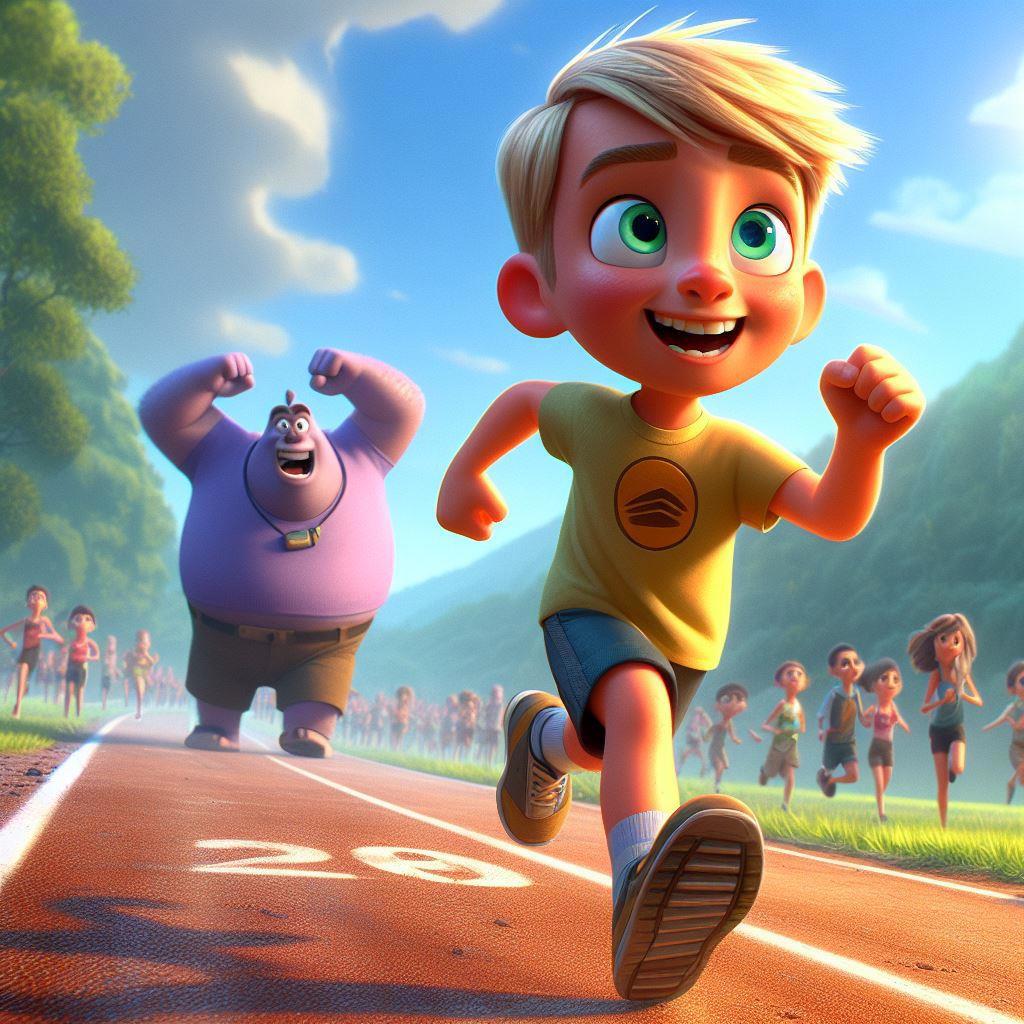 Отчаянным усилием Миша рванул вперёд и в несколько прыжков догнал Дёму перед самым финишем. Ещё мгновение — и Миша, обогнав соперника всего на пару секунд, сорвал финишную ленточку.