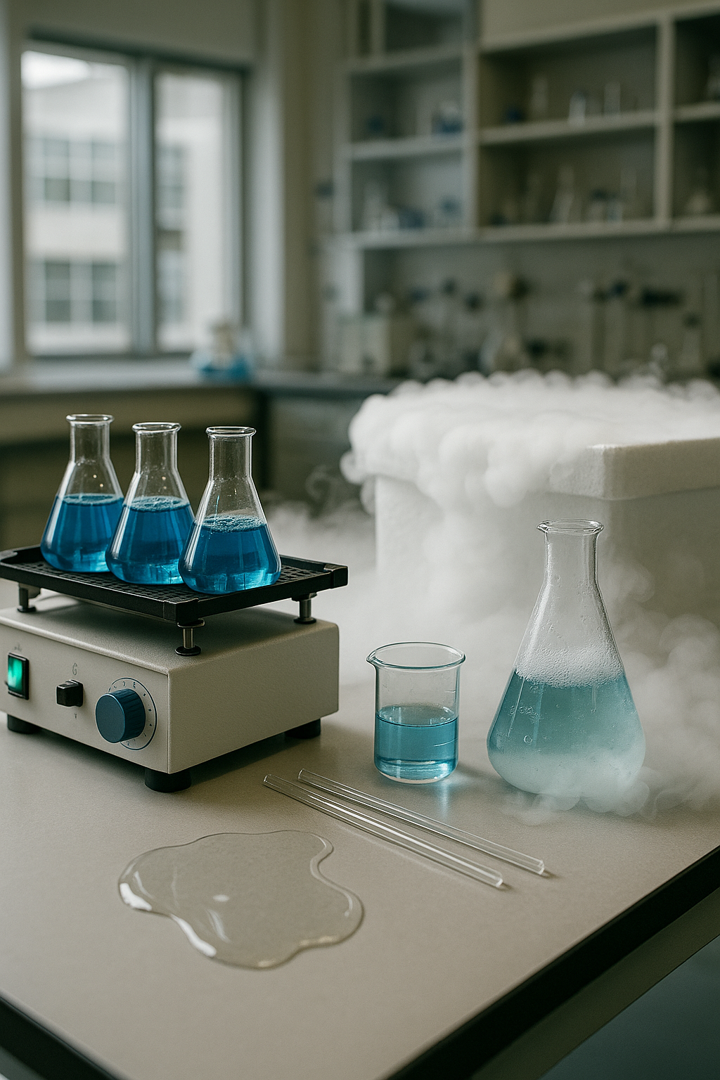 Лабораторный стол казался для То и Же настоящим материком, полным опасностей, неизведанных земель и странных существ с длинными стеклянными шеями и крышками вместо шляпок. На этом материке кипела жизнь: пробирки звенели, пипетки щёлкали, шейкер покачивался, словно корабль на волнах.