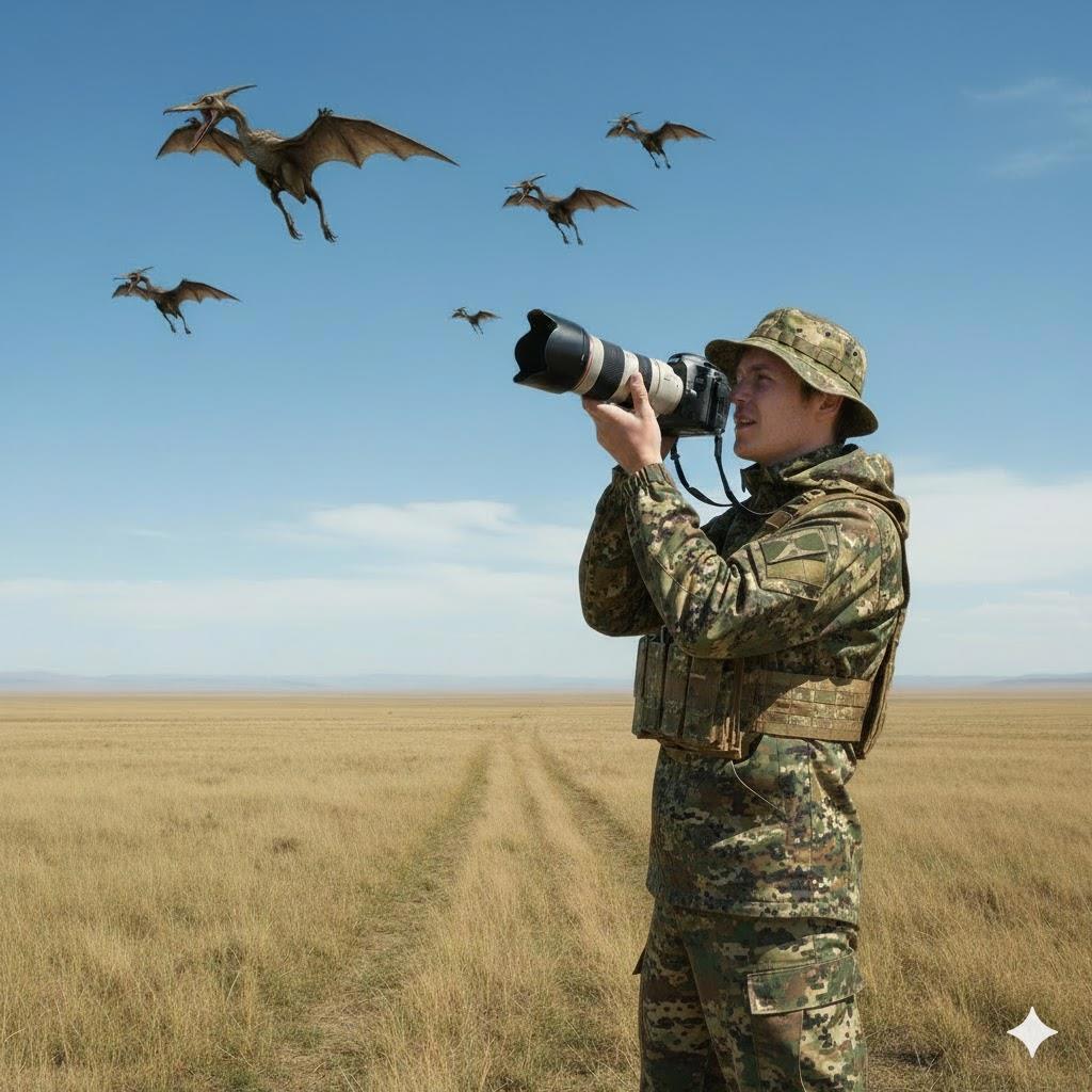 И тут я услышал. Глухой, скрежещущий звук. Птеродактиль, тяжело опустился на крышу кабины моего "Амарока" и начал царапать металл. Звук, от которого кровь стынет в жилах. Эта тварь, этот, жеванный ежик, птеродактиль, приземлился.