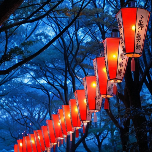 Цветы вели его в гору, и Киёмару послушно шёл вперёд, не оглядываясь. Света впереди становилось всё больше. В дополнение к цветам появились бумажные фонарики, висящие наверху, под кронами деревьев — сначала поодиночке, потом гирляндами.