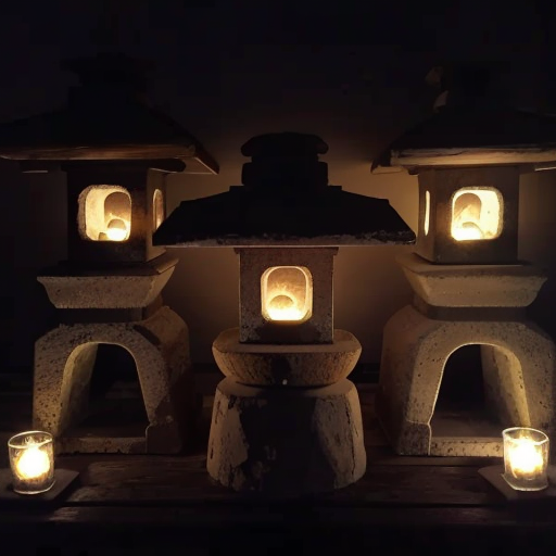 Между корней одного из гигантов Киёмару заметил что-то, похожее на человеческое лицо, и чуть не дал стрекоча, но всё же присмотрелся. В отблесках света хризантем меж корней приютилась маленькая каменная статуэтка божества с круглой лысой головой. Статуэтку тоже покрывал мох, толстый и пушистый, как лисья шуба. Казалось, что маленький ками кутается в него, подняв воротник от дождя. Рядом, словно зонтик, торчал тощий гриб.