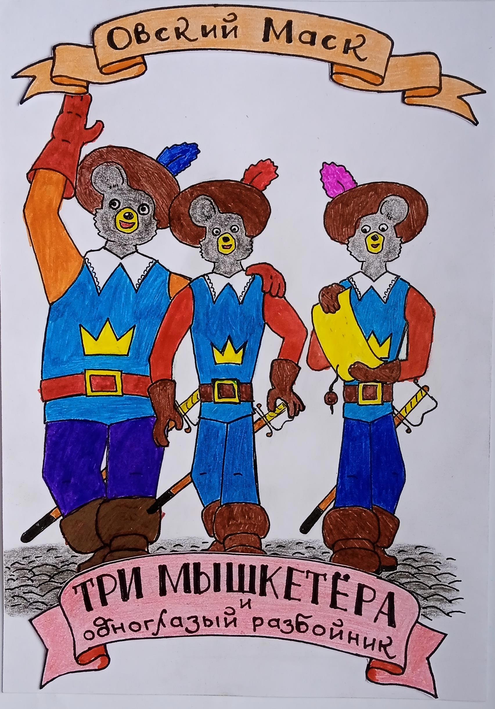 Все мышкетёры были в одинаковой форме, и у каждого на шляпе красовалось перо. Конечно, это были обычные воробьиные перья, но у каждого мышкетёра оно было выкрашено в свой цвет. У кого красное, у кого синее, у кого фиолетовое, у кого оранжевое, у кого жёлтое…
