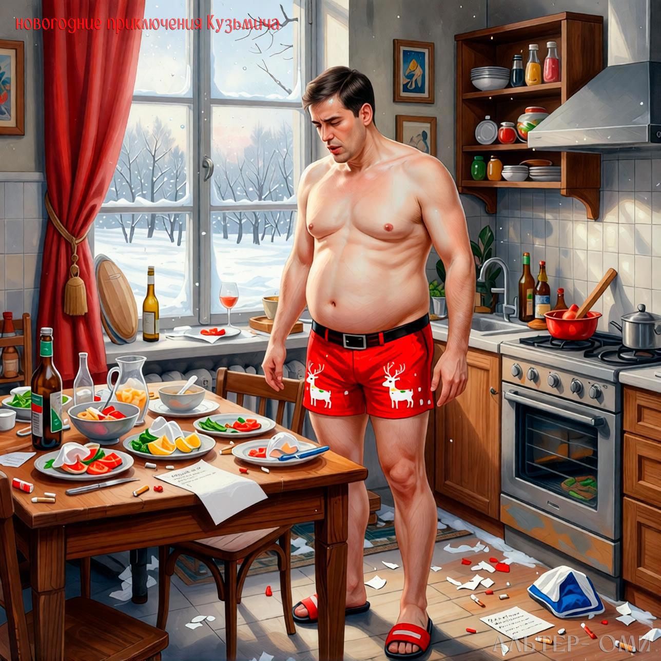 Что вообще вчера произошло? Ну, Галка стол накрыла — всё красиво, как положено. Пришли гости: Вовка с женой, Серёга, Ленка… Вроде ещё кто-то был, но уже не помню. Выпили за Новый год. Потом ещё выпили. Вовка гитару взял, запел «Мурку». Потом… Чёрт, что потом было? Что-то с шубой и люстрой. А дальше провал полный.
