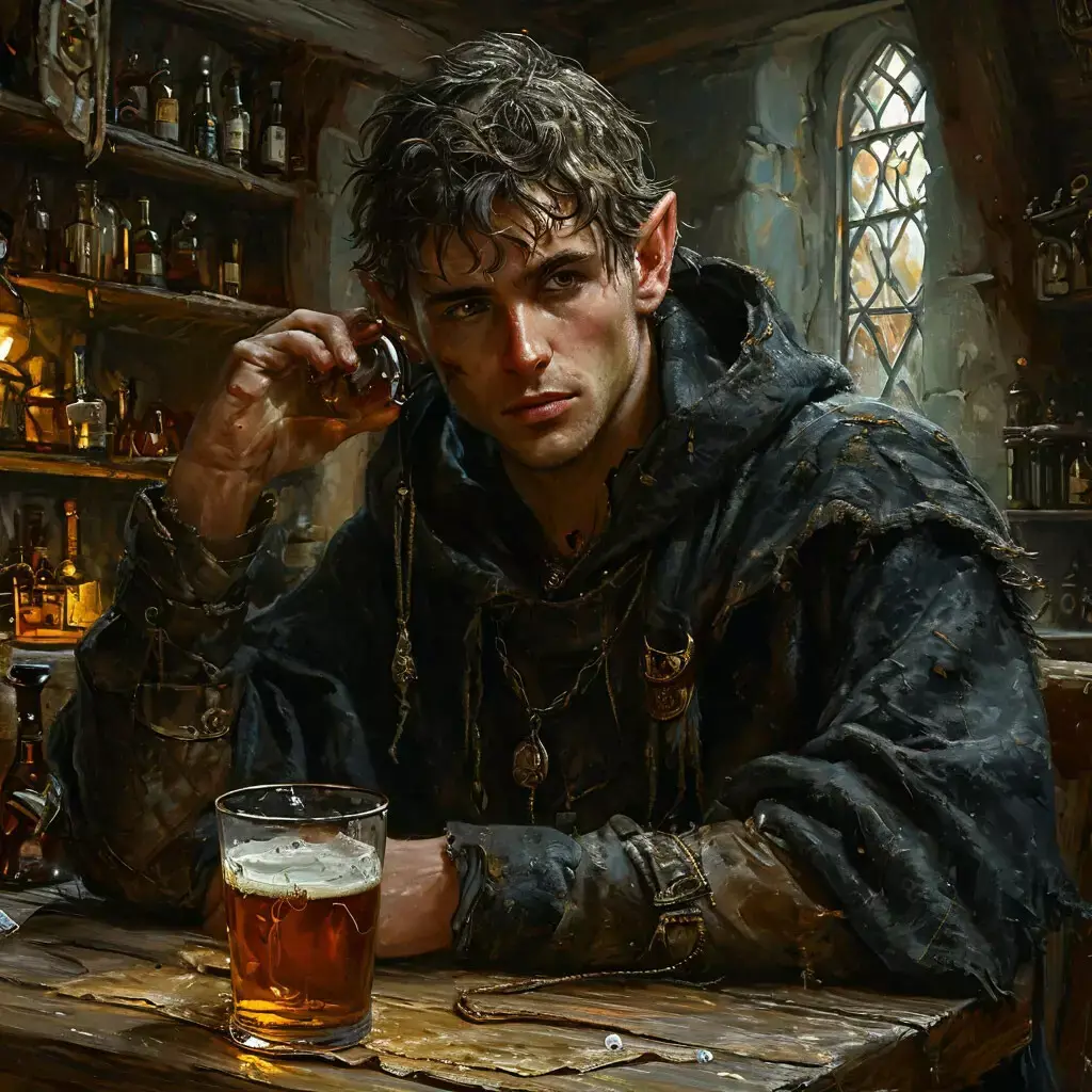 -Ох. Наверное, все же я пройду мимо… -фигура в плаще осмотрелась вокруг и понял, что более-менее достойных компаньонов ему тут не найти. Были еще пару гномов, даже маг был, но они не внушали уверенности, да и не любил эльф гномов. -Хотя, раз вы настаиваете, то останусь с вами. -при этом подпрыгнул и приземлился пятой точкой на столешницу. -Бармен, угости моих товарище выпивкой.