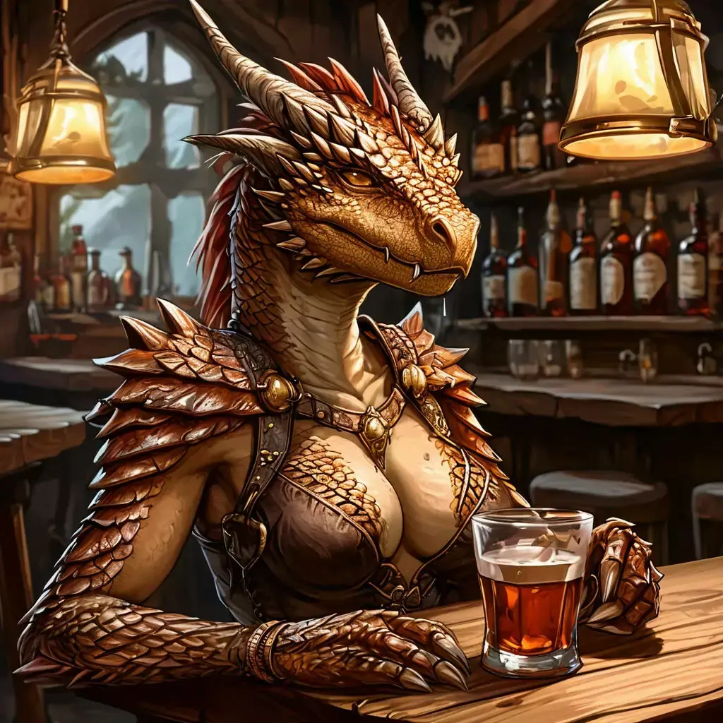 -Но-но, прошу без язвительного обращения. -злобно зыркнула на полуорка девушка, от чего тот слегка поник. Чувство большого и зеленого было слегка задето, ведь дракониха немного уступала ему в росте, а учитывая, что он сидел на стуле, то она была выше его в данный момент. -Если вы не против, я бы хотела с вами, остальные в таверне, уж слишком... -она покрутила рукой в воздухе. -Хлипковаты для данной работы.