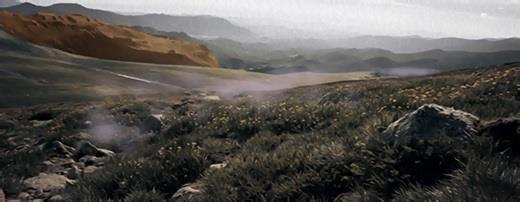 Молочно-сиреневая дымка, ближе к полудню, просочилась в складку между цепью рябых от валунов холмов под кривым росчерком бурой скалы, сгустилась вокруг временной стоянки на краю травяного плоскогорья в Землях Танра, наполнила воздух влажной приморской духотой мимолётной зимы.