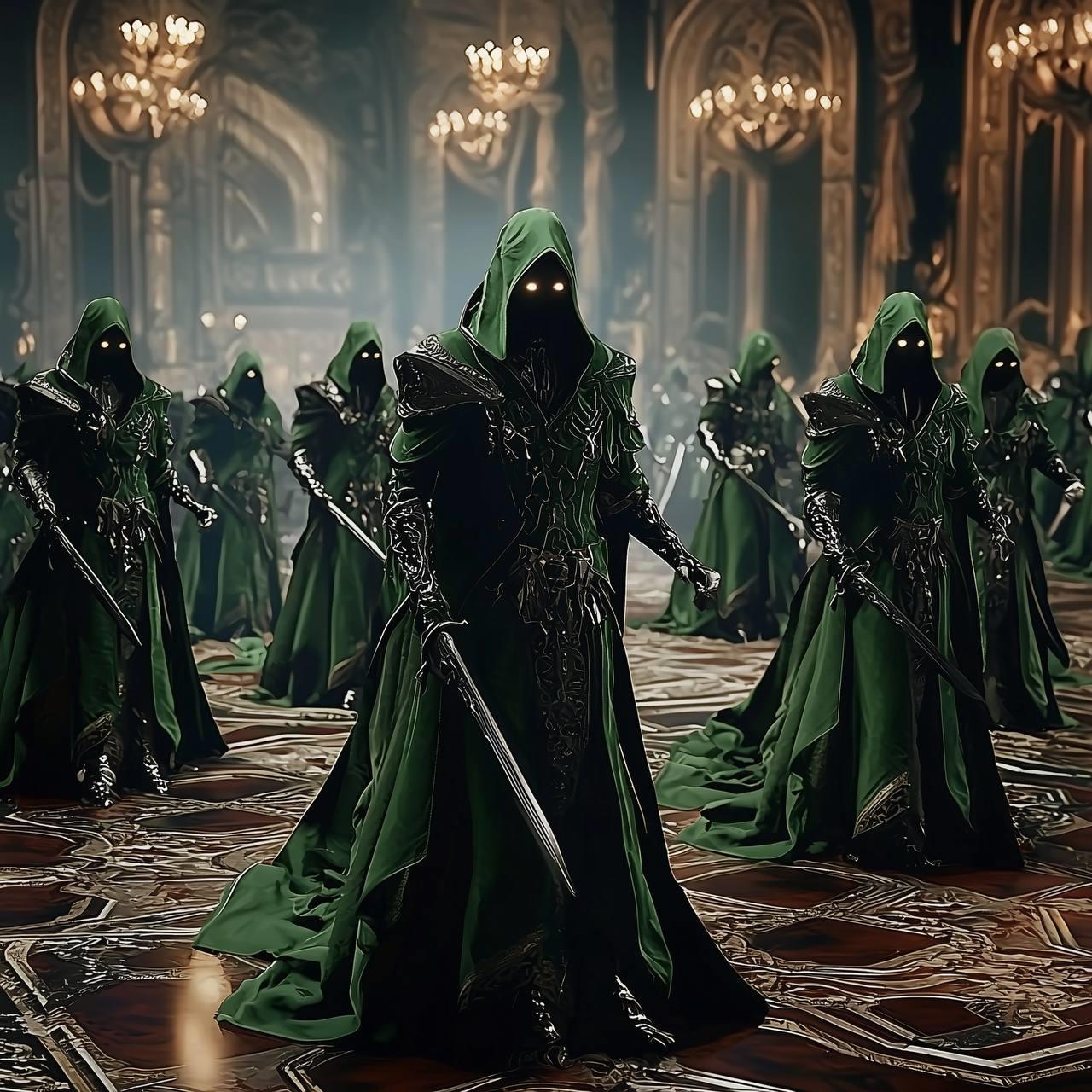 Грохот в Тронном зале, наконец, привлёк внимание остальных гвардейцев, несущих дежурство в смежных помещениях и на лестнице, и уже через мгновение помещения наполнились тяжёлыми шагами и боевыми криками. Вооружённые алебардами и мечами, воины королевской гвардии спешили к месту прорыва. Однако, эльфы были готовы. Они шли колонной, как смертоносная волна, сметая всё на своём пути. Эльфийские маги, двое из которых оставались у портала, принялись выкрикивать заклинания, покрывая стены и потолки зловещими рунами. Зеленые отблески замедляли движения гвардейцев, обрушивая на них магические удары.