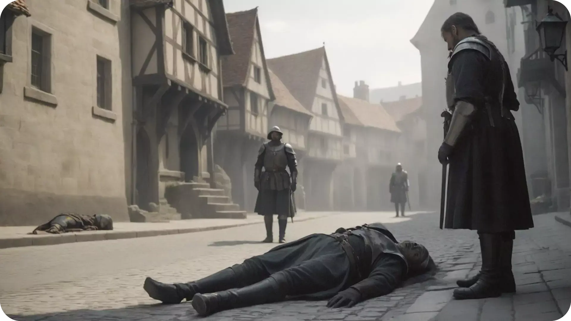 Кроме стражников на улице никого не было. Люди сначала сбежались посмотреть на трупы, но, когда увидели, что тут не просто трупы, а какая-то дрянь, их всех словно ветром сдуло.