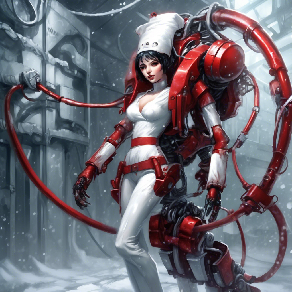 Активировав электро механическую пилу находящуюся на стеллаже, с перекатом врезал пилу в неё, достав до её позвоночного столба, перепилив почти до конца капитанского корпуса, превращая её белоснежный мундир в красный.