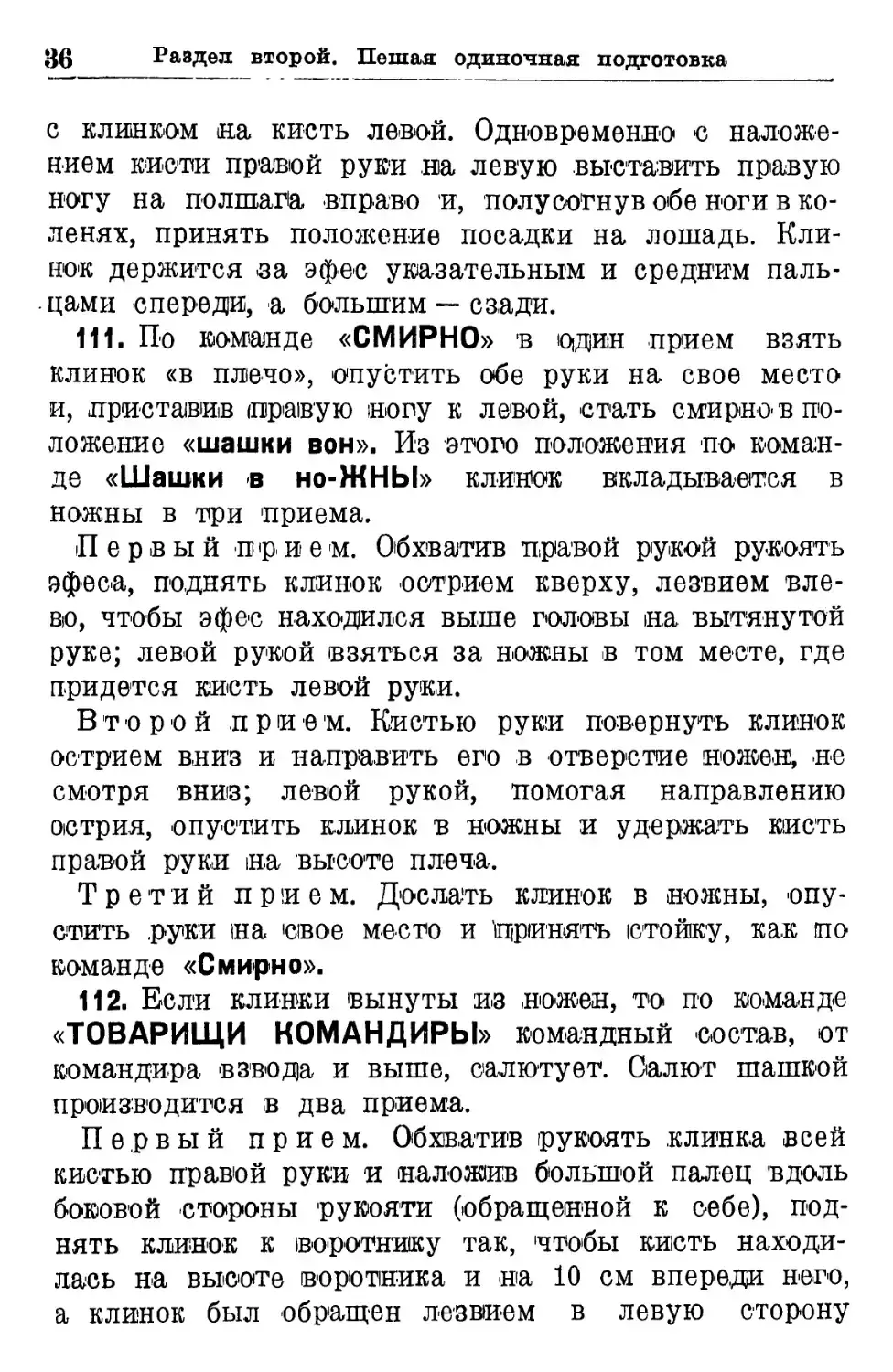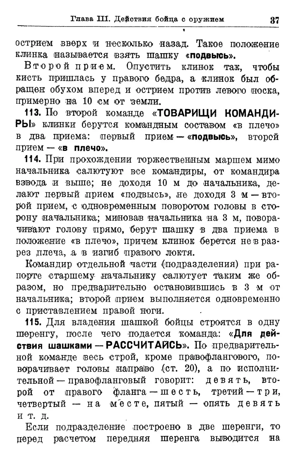 Командиры отдельных частей или соединений по предварительной команде командующего парадом обнажают шашки и повторяют команду: