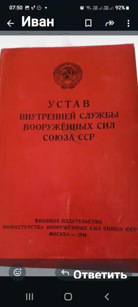 УСТАВ ВНУТРЕННЕЙ СЛУЖБЫ ВООРУЖЕННЫХ СИЛ СОЮЗА ССР от 24 июля 1946 года.