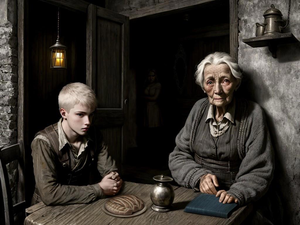 Она поставила кувшин с молоком на стол, достала с полки, завёрнутый в полотенце, хлеб.