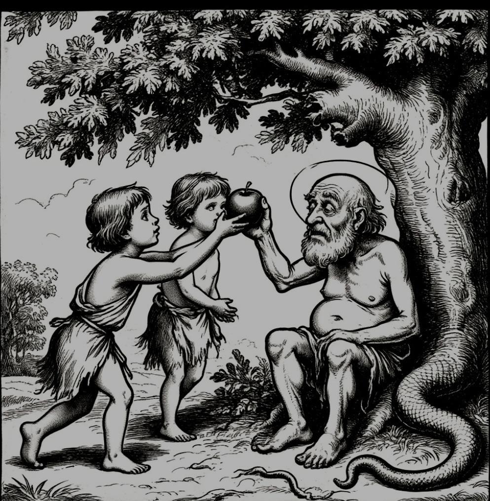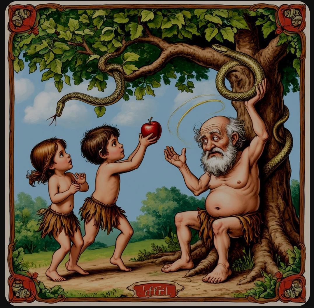 Райский сад напоминал ландшафтный проект сумасшедшего дизайнера. Реки текли вверх, яблоки светились неоновым светом, а львы мирно жевали траву рядом с ягнятами, периодически сплёвывая косточки.